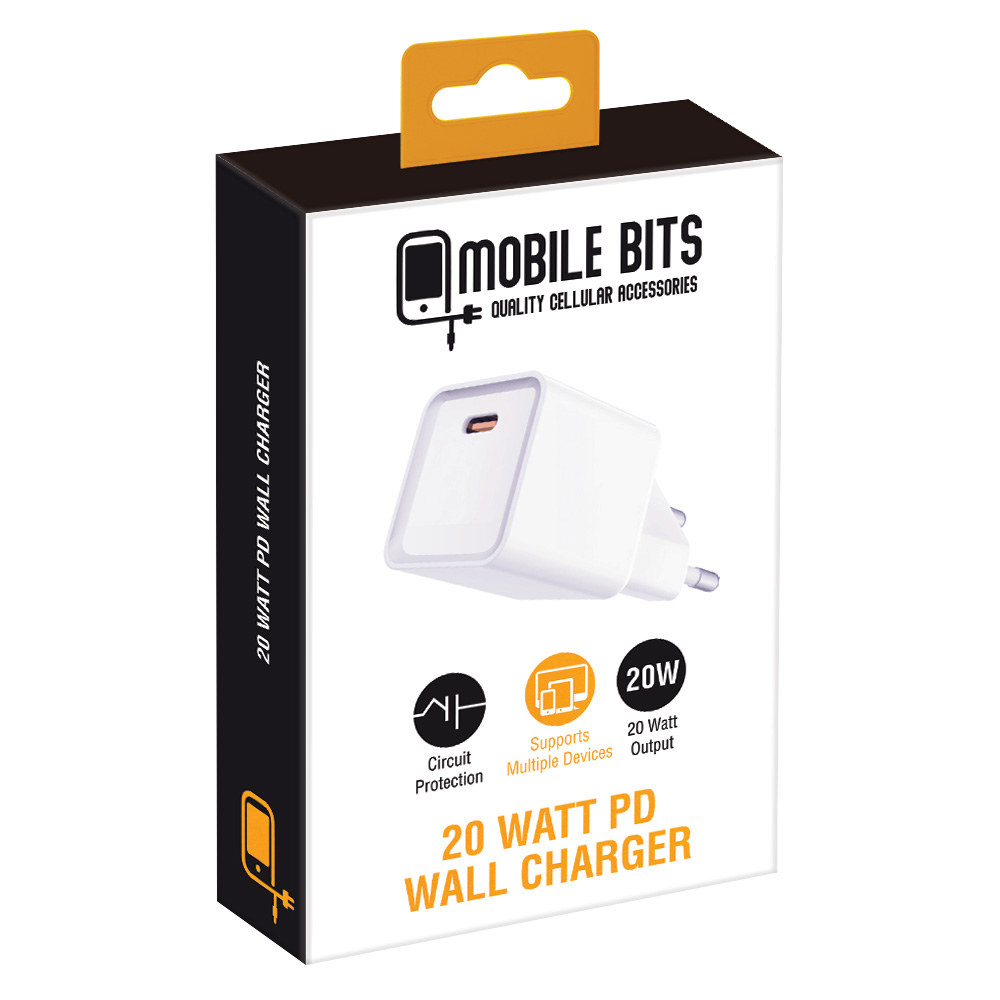 Fast, compact, and reliable—the Mobile Bits Retail 20W Type-C Wall Charger is built for modern charging needs. Featuring Power Delivery (PD) technology, it ensures rapid charging for compatible smartphones, tablets, and other USB-C devices. Advanced circuit protection keeps your devices safe from overcharging and overheating, making it the ideal charger for everyday use.