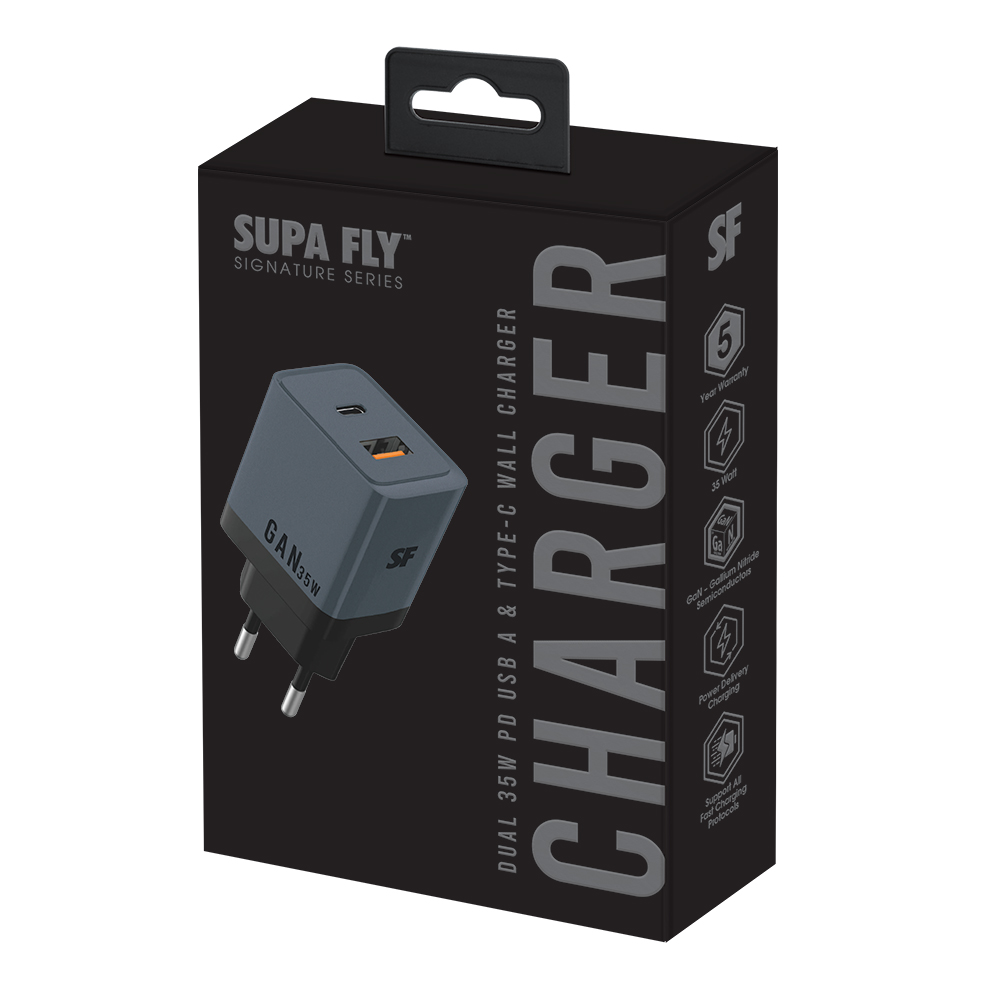 Designed to provide fast and efficient charging for your devices. With its dual 35 watt output, this charger delivers quick and reliable power. The USB A and Type-C ports make it compatible with most cables, providing you with the flexibility to charge multiple devices at once.