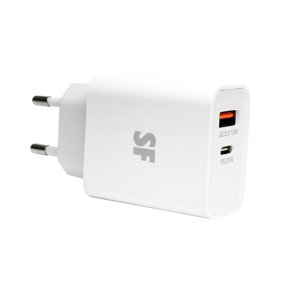 - Dual-port output: 20W USB-C PD + 18W USB-A QC