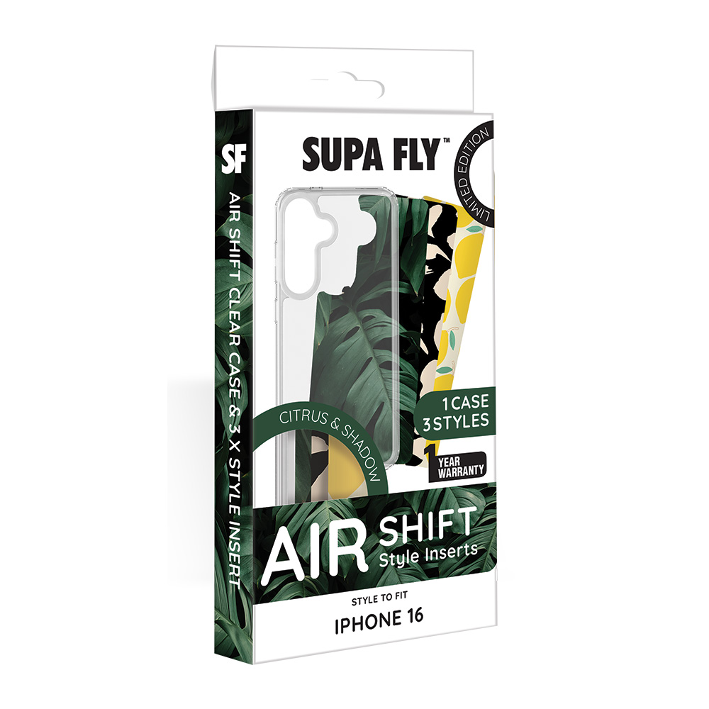 The ultra-slim, crystal-clear Air Slim Case includes 3 bold inserts—Monstera Noir, Desert Veil, and Lemon Drop—so your phone can vibe with your mood. From moody jungle nights to sun-drenched lemons and desert-chic textures, just pop in your insert and flaunt your style. Slim, protective, and mood-matching on the fly.