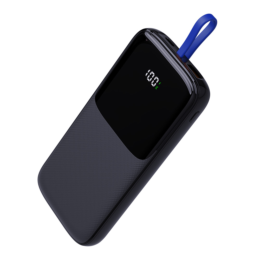 This compact power bank features 22.5W fast charging, a built-in Type-C cable, and dual output ports for added convenience. The LCD digital indicator displays remaining power, while circuit protection and a polymer lithium battery ensure safe, efficient charging wherever you go.