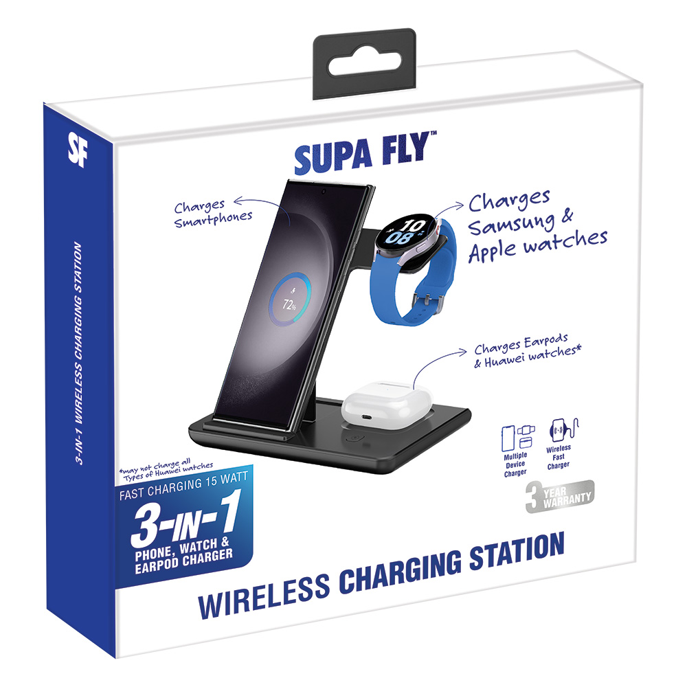 • Wireless fast charging for phone, watch & earbuds – all at once